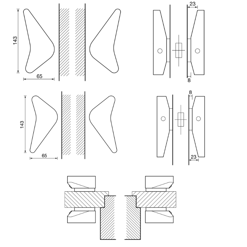 - 1x Design-Türgriff Boomerang (Paar für beidseitige Montage)