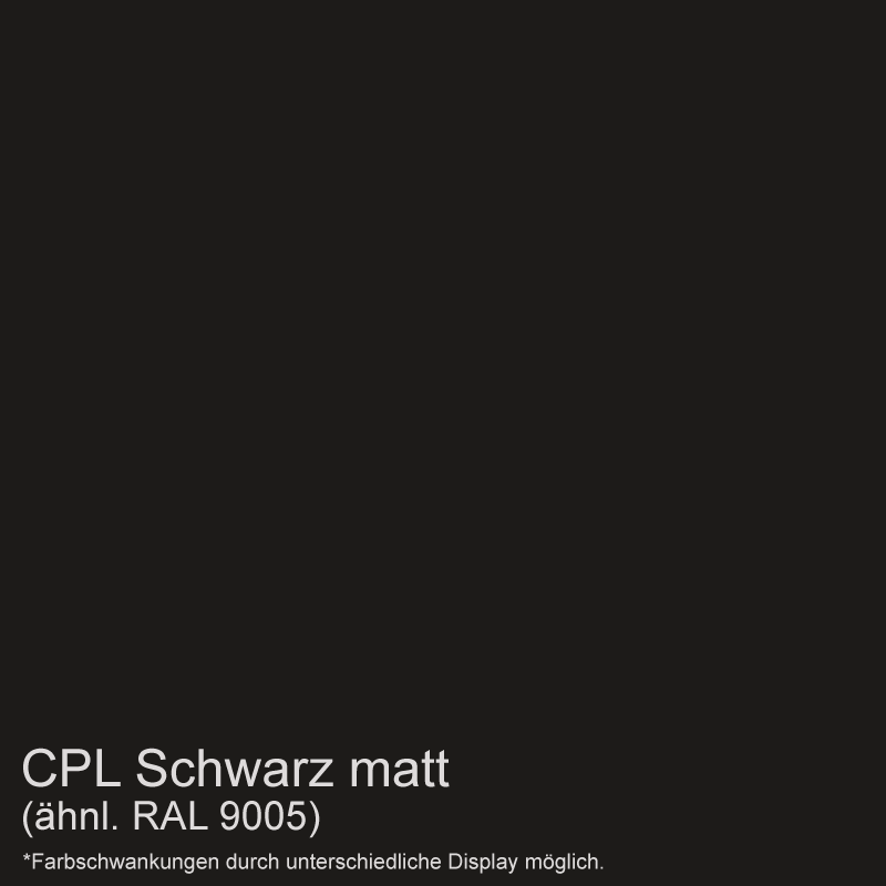 - Oberfläche: CPL Schwarz matt RAL 9005