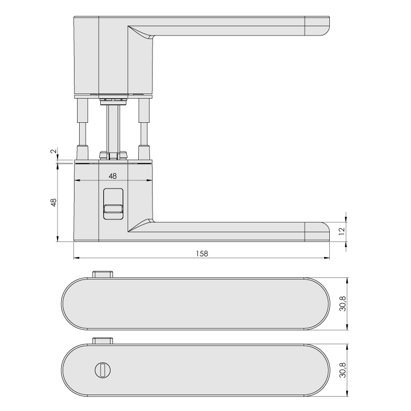 - für Zimmertüren ohne vorhandene Schlüssellochbohrung, Schliessvorrichtung ist im Griff integriert – kein spezielles Schloss nötig
