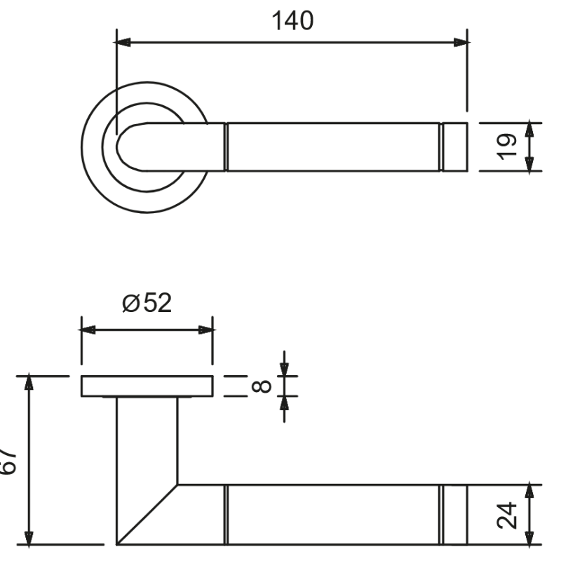 - Rosette: Ø 52 mm, Höhe 8 mm
