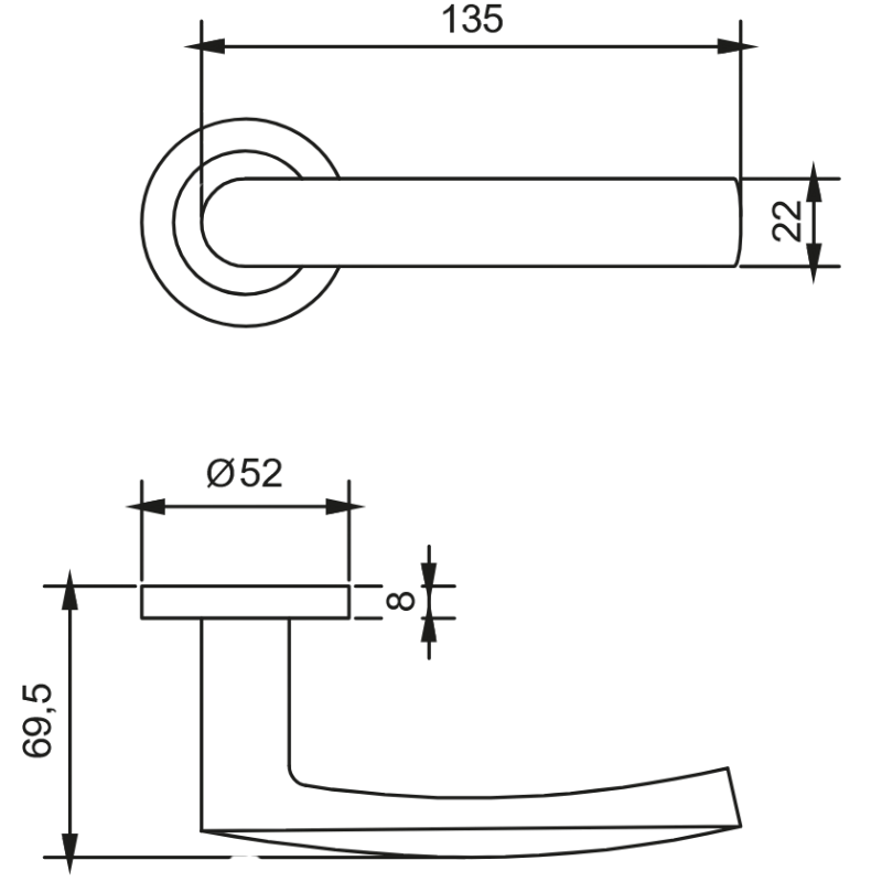 - Rosette: Ø 52 mm, Höhe 8 mm