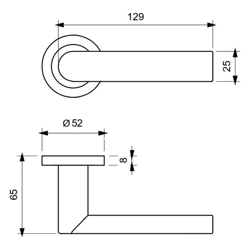 - Rosette: Ø 52 mm, Höhe 8 mm