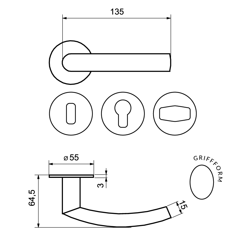 - Rosette: Ø 55 mm, ultraflach (nur 3 mm Aufbauhöhe)