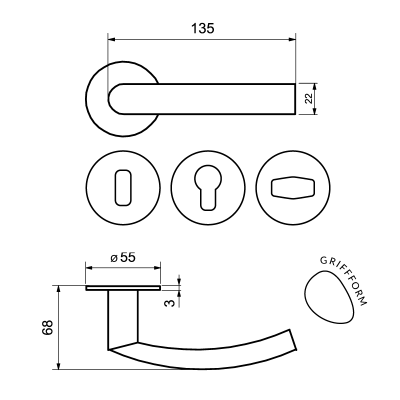 - Rosette: Ø 55 mm, ultraflach (nur 3 mm Aufbauhöhe)