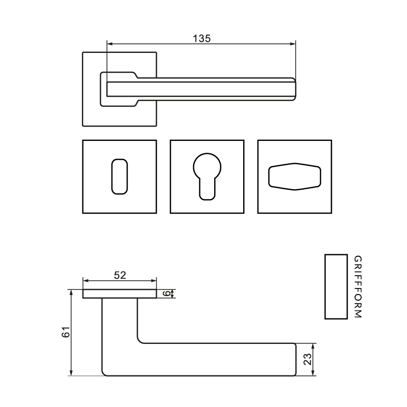- Rosette: eckig, 52 × 52 mm, Aufbauhöhe ca. 6 mm