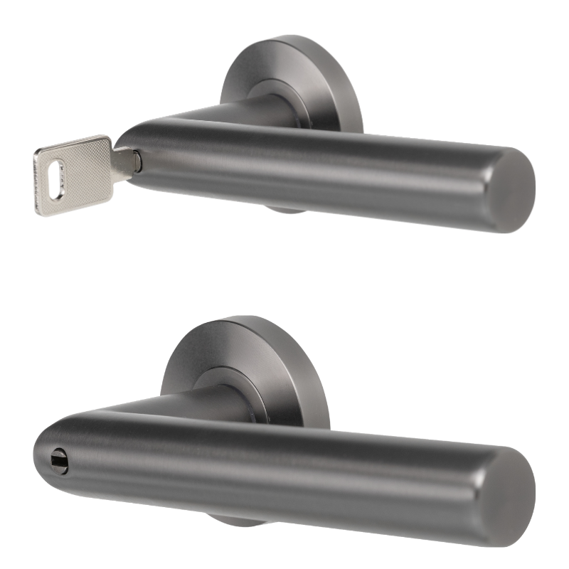 Wähle zwischen einer unverschließbaren Variante, einem innenliegenden Schieberiegel oder der Version mit beidseitig nutzbarem Schließzylinder inklusive drei Schlüsseln. Alle Varianten verfügen über eine unauffällig integrierte Notentriegelung. Die Technik verschwindet vollständig im Inneren des Griffs – sichtbar ist nur reduziertes Design.