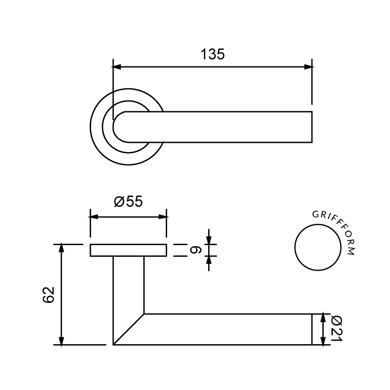 Der Griff eignet sich für Standard-Einsteckschlösser und kann rechts oder links montiert werden. Auch bei diesem Modell gilt: keine sichtbaren Schrauben, keine Madenschrauben, keine Kompromisse – nur pure Gestaltungskraft auf kleinstem Raum.