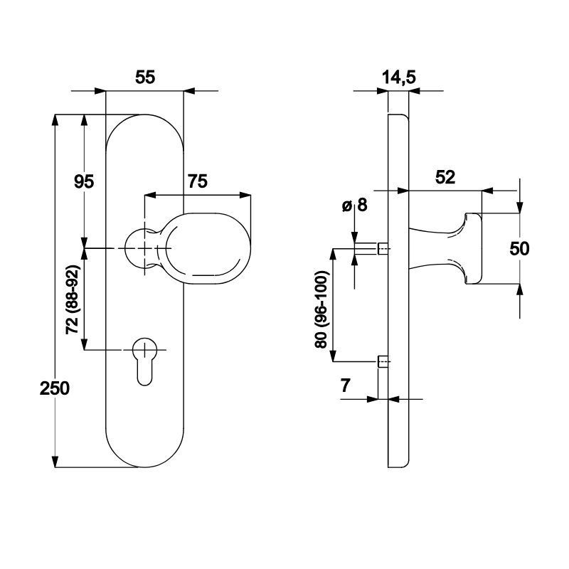 - 1 x Langschild-Schutzbeschlag außen mit Knauf