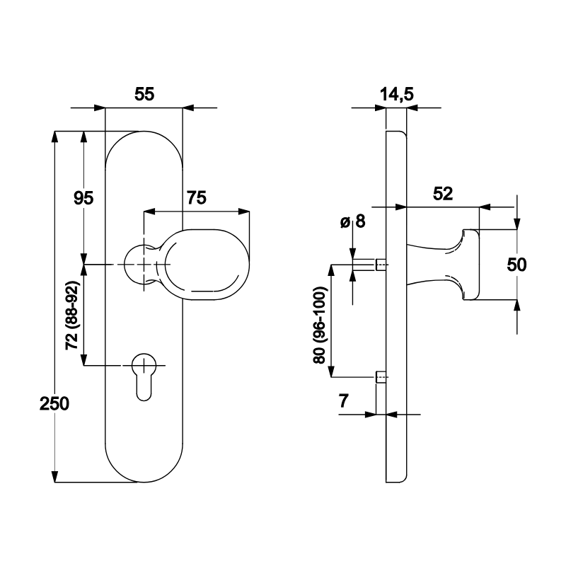 - Abstand: 72 mm (wahlweise 88/92 mm)
