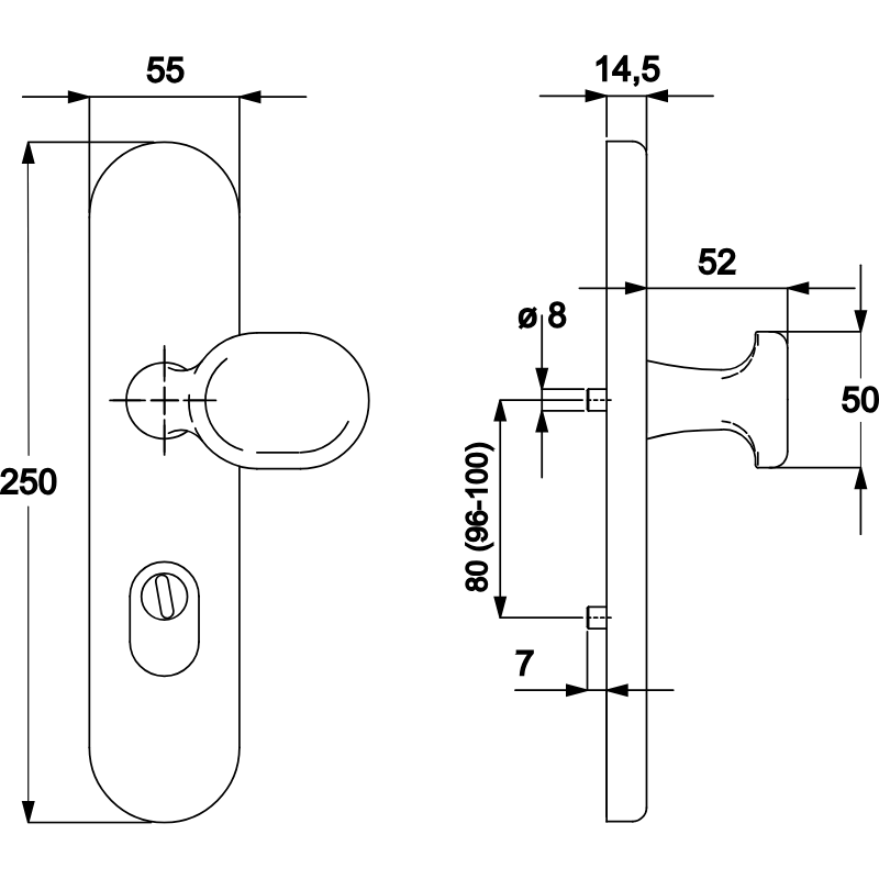 - Schildhöhe: 250 mm, Schildbreite: 55 mm