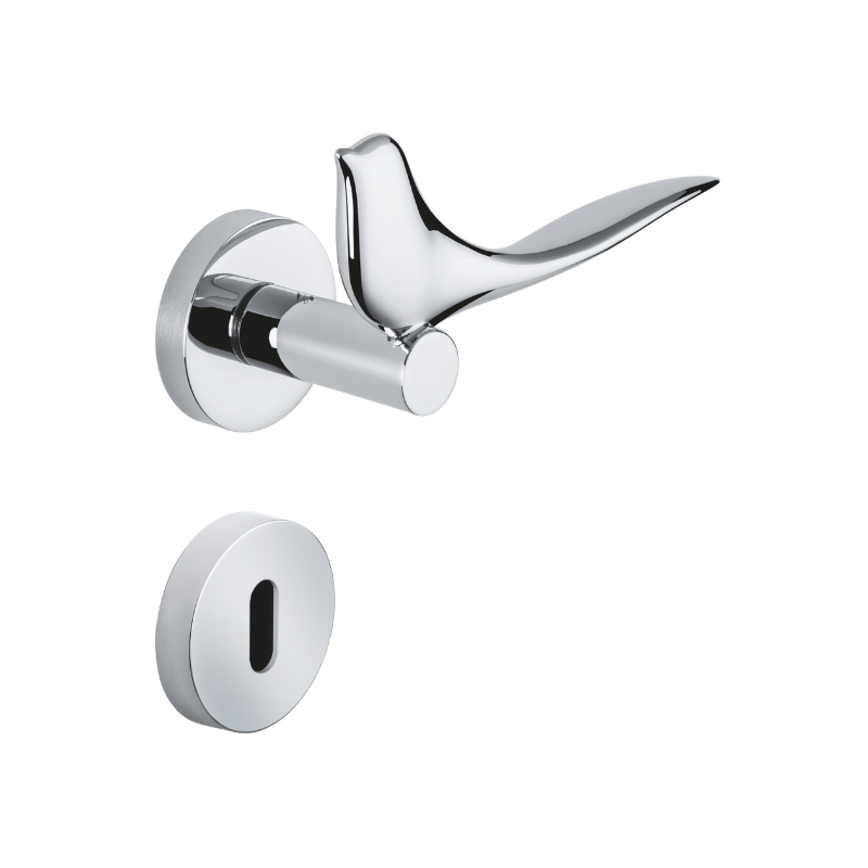 Der Türdrücker Twitty von Designer Tomo Kimura überzeugt mit einer einzigartigen Gestaltung: Die organische Silhouette in Form eines Vogels macht den Griff zu einem außergewöhnlichen Blickfang. Die polierte Chromoberfläche sorgt für brillante Spiegelungen und eine elegante Wirkung, die sich perfekt in moderne Interieurs einfügt. Ergonomisch geformt und hochwertig verarbeitet, verbindet Twitty künstlerisches Design mit Funktionalität. Erhältlich als BB-, PZ- oder WC-Garnitur, bietet er für jede Tür die passende Lösung.