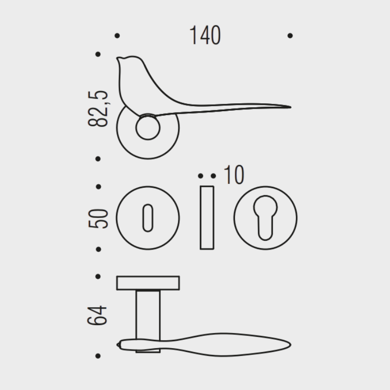 - Höhe Türdrücker inkl. Rosette: ca. 82,5 mm