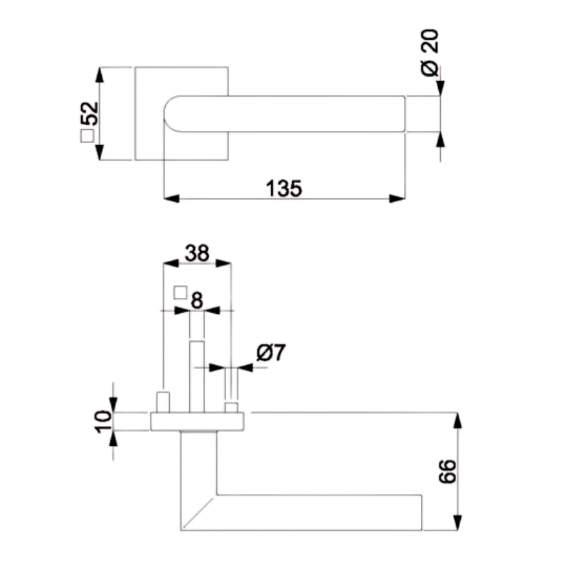 - Vierkantstift 8 mm und Montagematerial