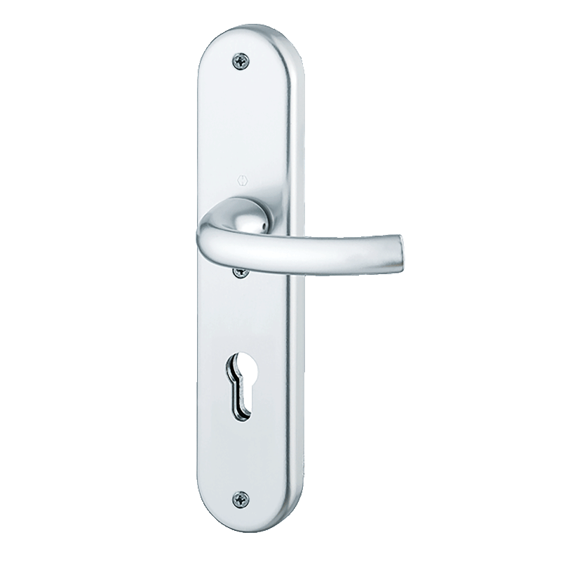 Unsere hochwertige Türklinke Tokio - F1 Aluminium natur steht für zuverlässige und jahrelange Qualität. Diese Schutzgarnitur für Wohnungseingangstüren ist WK2 geprüft.