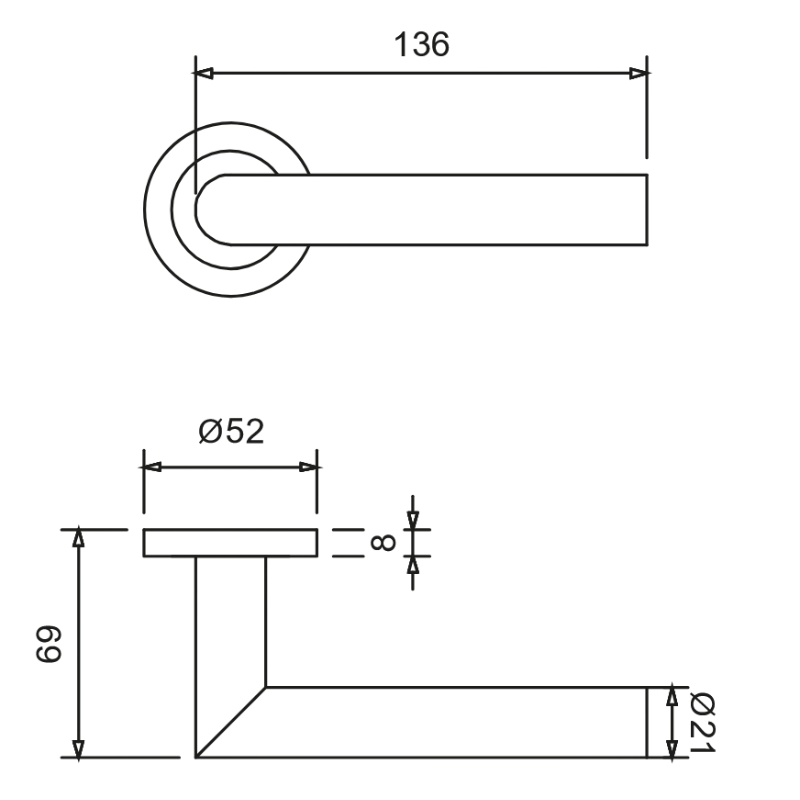 - Drückerstift: 8 mm, inkl. Festdrehverbindung