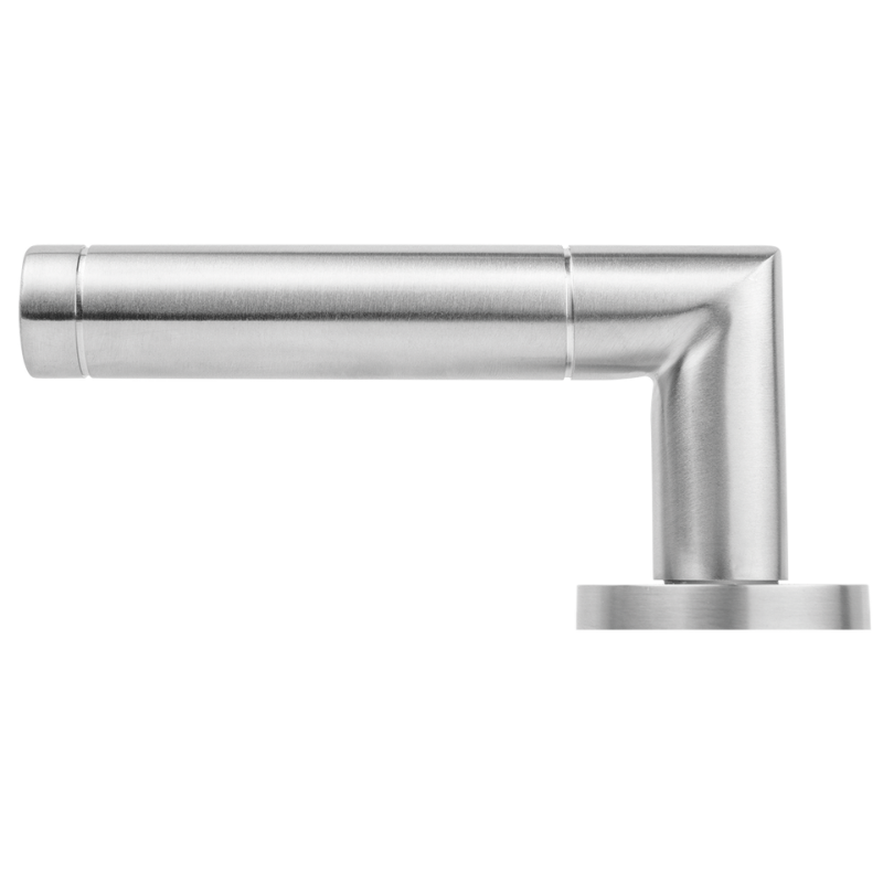 Mit der Genua Rosettengarnitur bietet Griffwelt ein Türgriff-Design, das auf weiche Rundungen und angenehme Haptik setzt. Der gebogene Griff endet in einer dezent gerundeten Spitze – klassisch, sicher und handfreundlich. Die matte Edelstahloberfläche wirkt zurückhaltend edel und passt zu nahezu jedem Türstil. Ob im Flur, Schlafzimmer oder Büro – Genua ist die ideale Wahl für funktionale Innenräume mit stilvollem Anspruch zum Einstiegspreis.