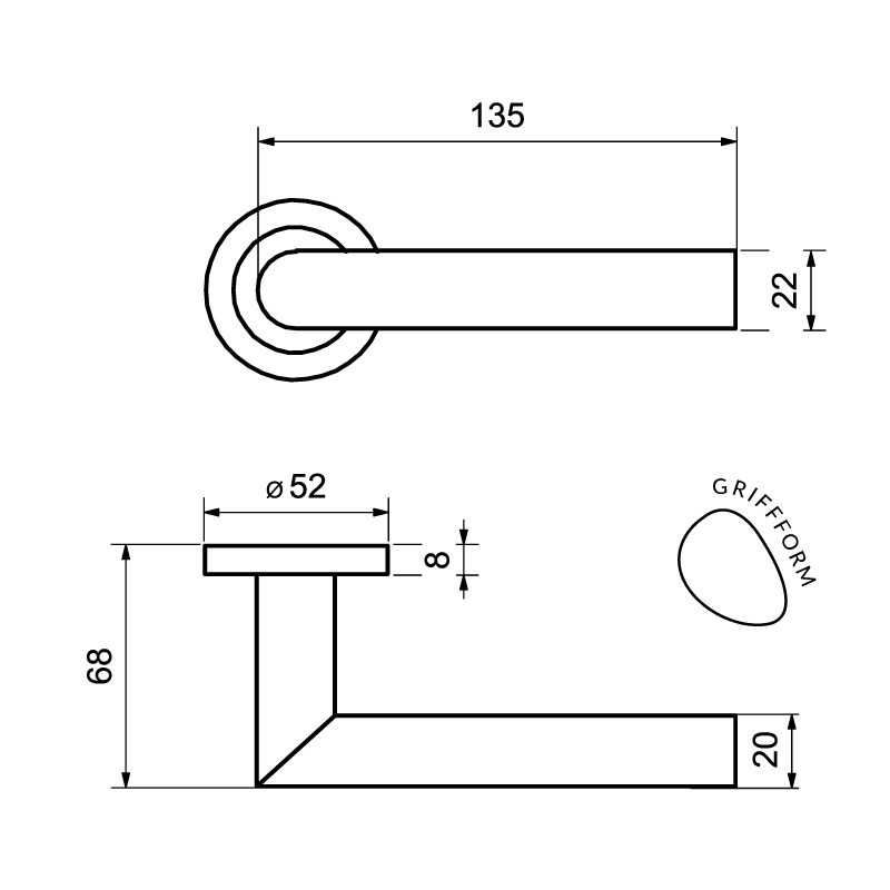 - Drückerlänge: ca. 135 mm