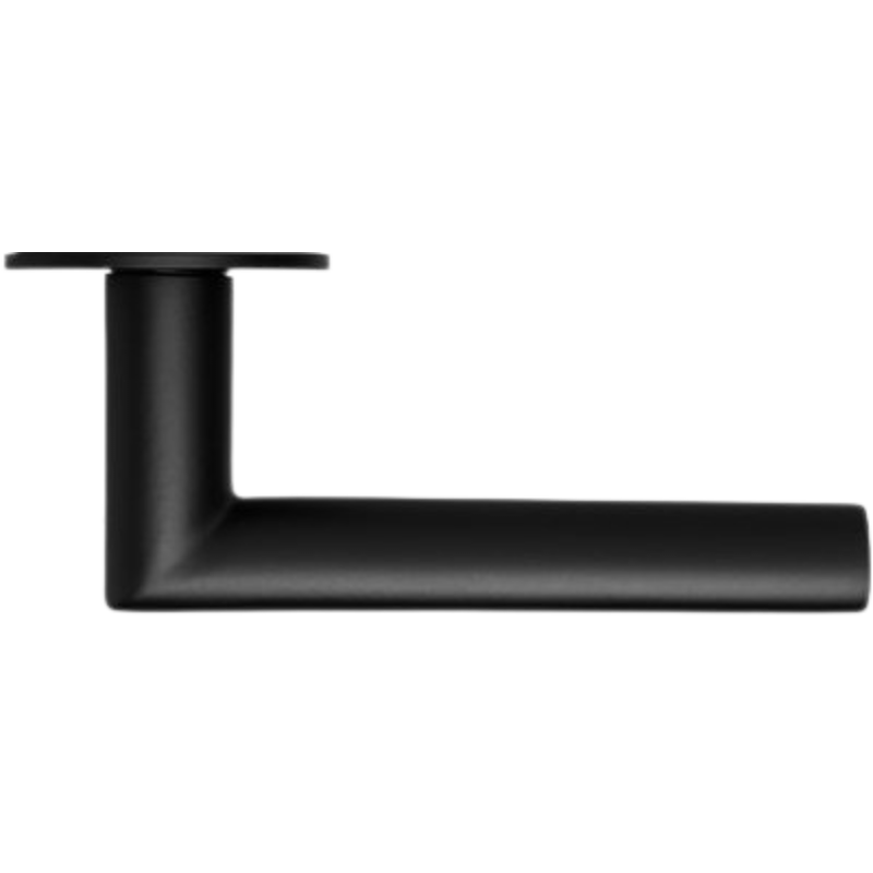 Die Griffwelt Portofino Flat Round Garnitur in Tiefschwarz matt kombiniert moderne Eleganz mit angenehmer Haptik. Der Griffverlauf ist sanft abgeschrägt, wirkt aber durch die schwarze Pulverbeschichtung selbstbewusst und kontrastreich. Mit nur 3 mm Aufbauhöhe bleibt die Rosette dezent im Hintergrund – perfekt für minimalistische Zimmertüren, bei denen das Design flächenbündig wirken soll.