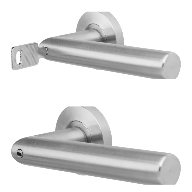 Trotz der minimalistischen Optik steckt im Inneren clevere Technik. Du hast die Wahl: als reine Drückergarnitur ohne Verschlussfunktion, mit einem dezent verbauten Schieberiegel auf der Innenseite oder mit einem beidseitig nutzbaren Schließzylinder inklusive drei Schlüsseln. Die Notentriegelung bei den verschließbaren Ausführungen ist so unauffällig integriert, dass sie das Design nicht stört – aber im Alltag zuverlässig funktioniert.
